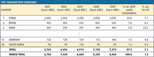 표에서 보는 바와 같이 대한민국은 TOP 18번째로 많은 양의 타일을 소비하고 있다.