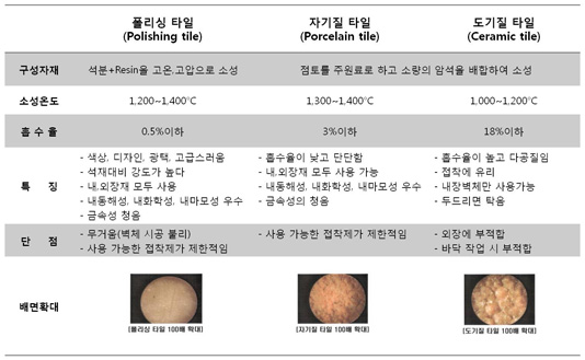타일 접착제의 등급